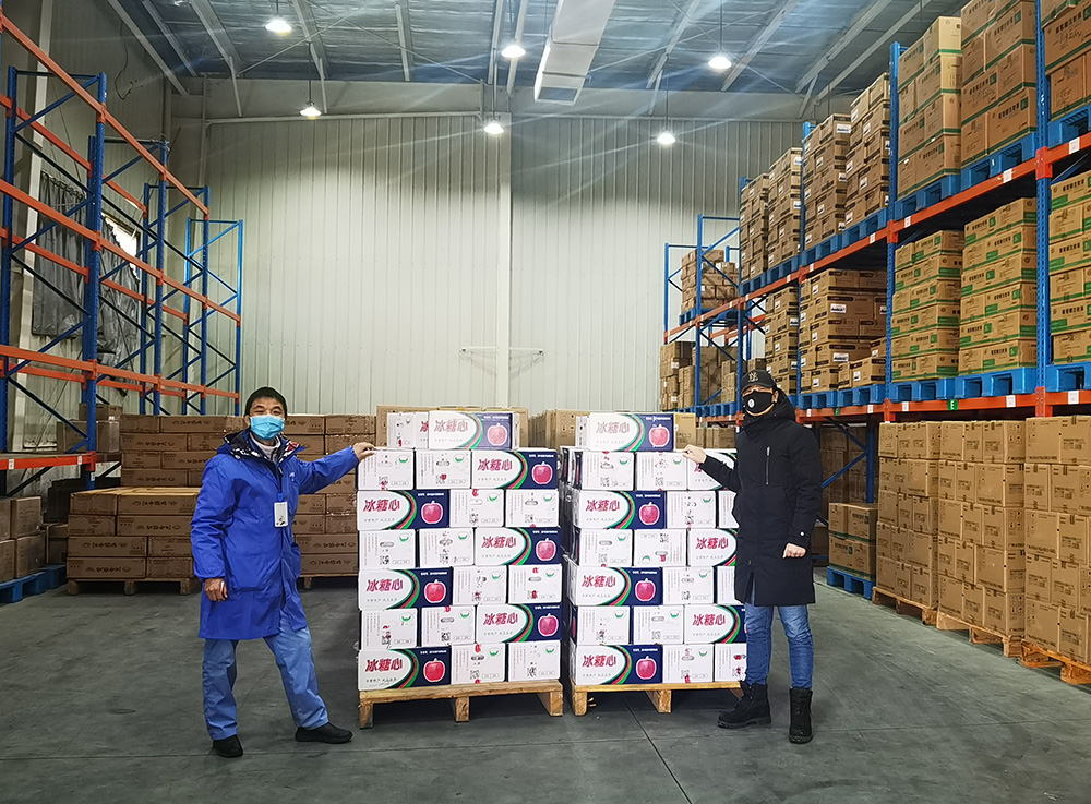 2月18日上午,由社员们捐款购买的100箱甘肃冰糖心苹果由支社副主委李玮送往江西省新冠肺炎疫情防控应急指挥部收储仓库。