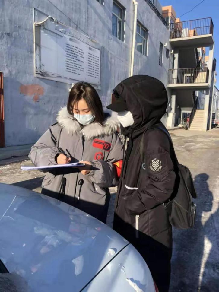 学校财经学院预备党员刘佳欣日前加入当地社区(内蒙古锡林郭勒盟西乌珠穆沁旗罕乌拉社区)防疫工作中,积极宣传防疫知识、收集疫情信息和外来人员情况。当前,内蒙古白天气温平均在零下25度,刘佳欣穿着厚厚的棉衣,带着防护口罩和其他志愿者们一起每天工作7个小时。刘佳欣说:“作为一名预备党员,参与抗疫社区服务,是党员的责任担当。我觉得很有成就感。”