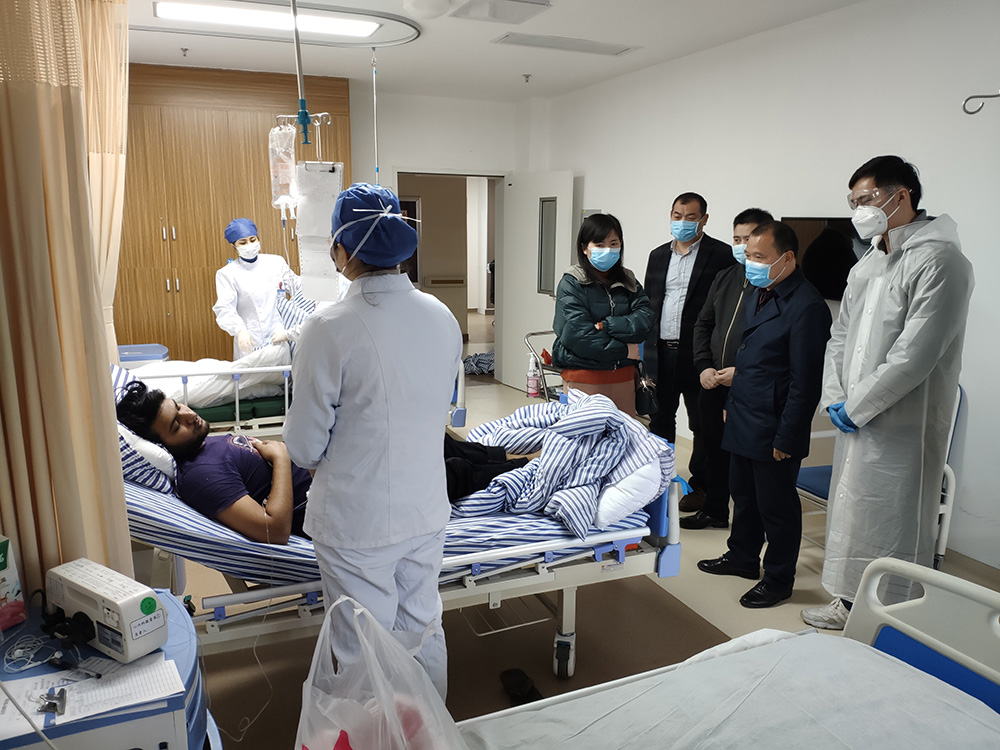江科网讯(通讯员 刘佳明)近日,我校孟加拉国籍留学生因患急性胰腺炎,被紧急送往南昌大学第一附属医院高新分院接受住院治疗。党委副书记、副校长闵桂林得知后,十分关心,在第一时间前往医院探望患病留学生。学工处副处长熊志淘,外国语(国际教育)学院院长王清玲、副院长郭留松等陪同探望。