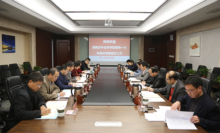 江科网讯(记者 李倩)11月13日下午,湖南涉外经济学院副校长白解红一行来校考察交流,受到副校长胡剑锋的热情接待。双方就应用型人才培养展开交流。座谈会在行政南楼第三会议室举行。