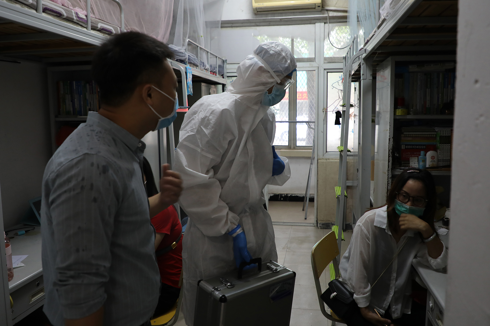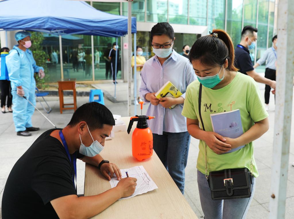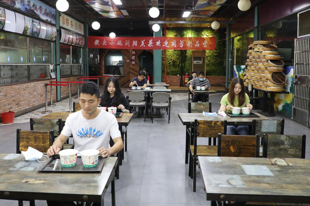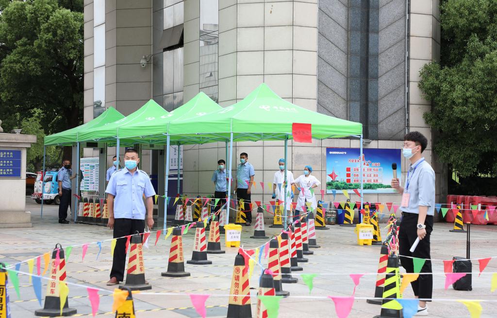 本次演练针对学生返校、学生晨午检、学生进入宿舍、学生就餐及学生进入教室等五个重点环节,按照“演练即实战”的标准,模拟学生返校后防控疫情的真实场景。在学生入校演练环节,“学生”佩戴口罩、单人单向以1米以上间隔排队依次进入报到通道,按照“一核二测三查四扫五通过”( “一核”即核对身份信息、返校信息<是否为同意返校>,“二测”即测体温,“三查”即查验“健康码”,“四扫”即返校扫码登记,“五通过”即通过检查与检测)的要求进入学校。在学生宿舍演练现场,“学生”有序经宿管员测温消毒后进入宿舍。在学生就餐演练环节实行错峰就餐,“学生”在餐厅门口洗手消毒测温后有序排队进入餐厅点餐、取餐,堂食者要求单人单桌单向就座。在教室上课演练环节,“学生”在教学楼入口进行体温检测后进入教学楼,进入教室后,“学生”们分散就坐。在入校、入宿舍、入食堂、入教室过程中,只要发现体温异常的“学生”,学校便立即启动应急处置机制,依次采取医务人员研判、场所消毒等措施。