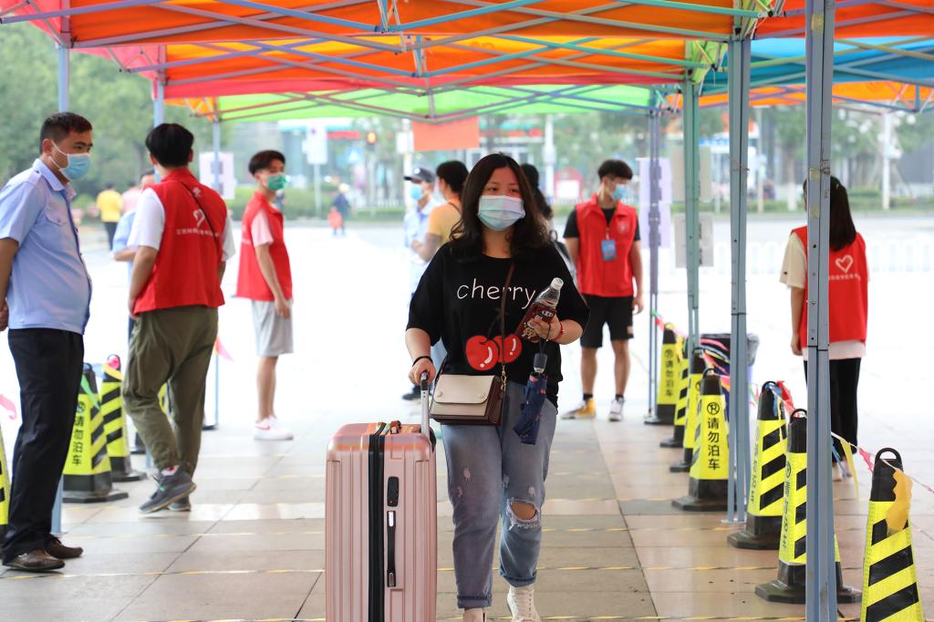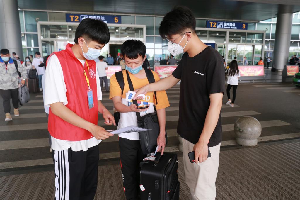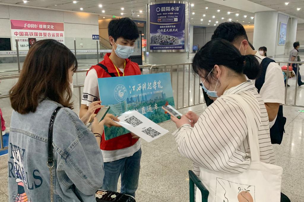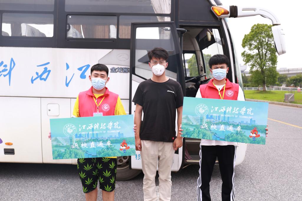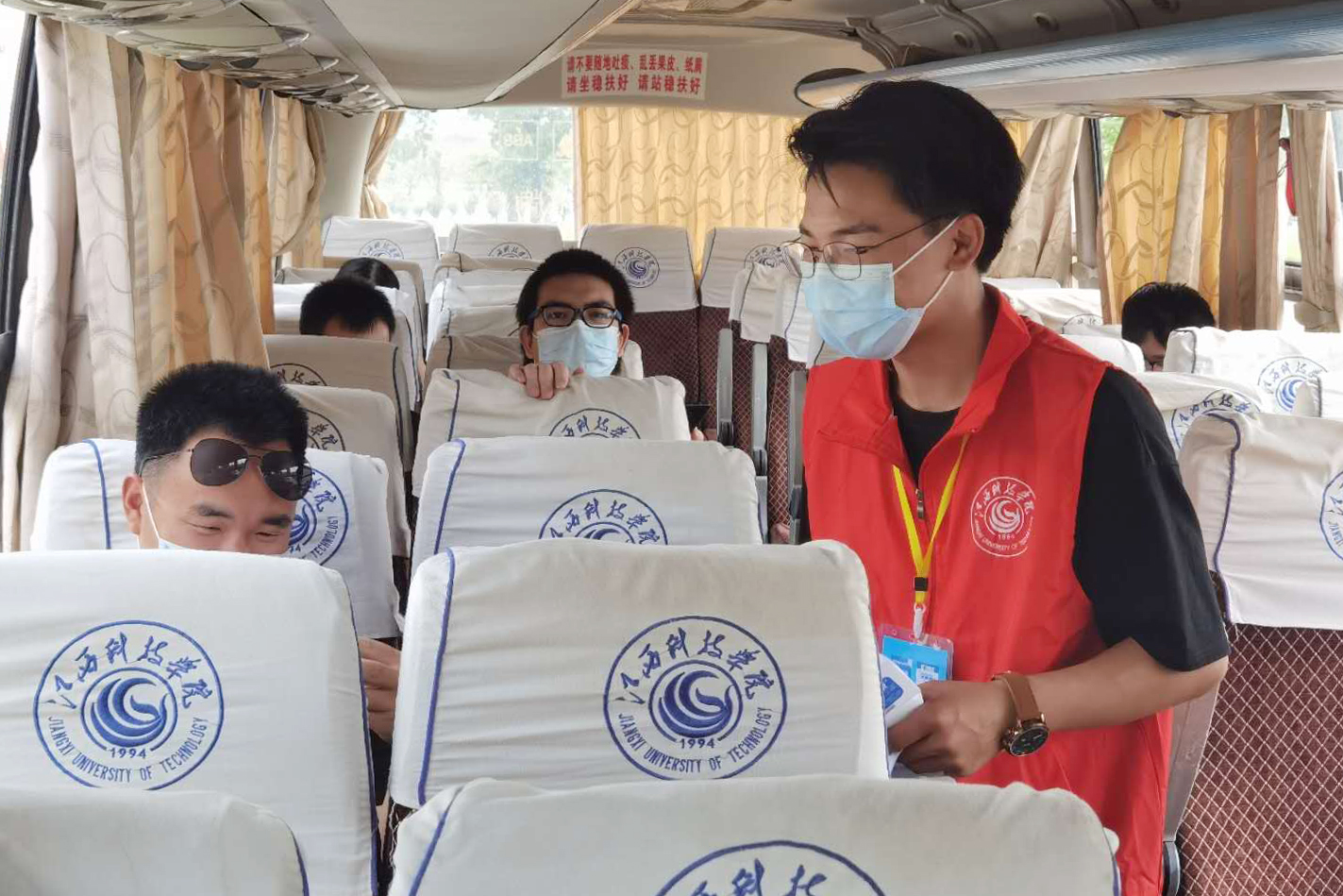 学校为了帮助同学们顺利返校,加强疫情防控闭环管理,分别在南昌火车站、南昌西站、昌北机场等设置学生返校接站点,选派老师引导大家有序乘车返校。同学们在经过消杀、身份信息核对、体温测量、个人健康码查验等环节后,乘坐校车直接抵达宿舍。