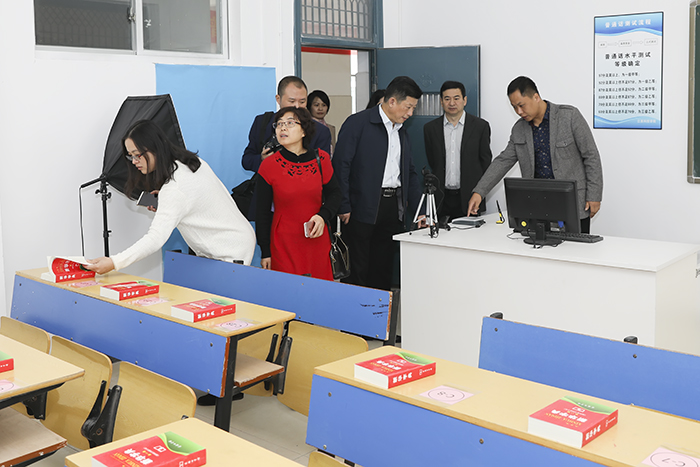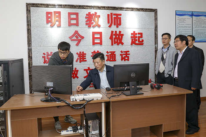 王俊一行巡视了我校普通话培训测试站建设,对测试站的建设给予了充分肯定,并表示验收合格。