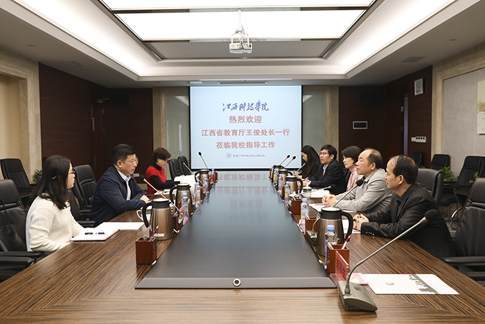 江科网讯(记者 薛敬涛 通讯员 王海文)11月6日上午,江西省教育厅语言文字工作处处长王俊一行来我校指导工作,对我校普通话培训测试站进行验收。我校董事长于果、党委书记程样国、副校长黄辉玲陪同检查。