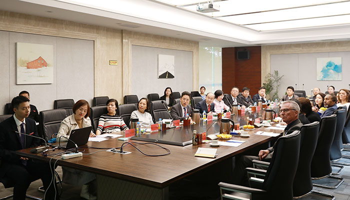 江科网讯(记者 李倩)11月4日上午,我校与德比大学就合作办学进行洽谈。座谈会在行政楼南三会议室举行。英国德比大学法人代表Harindra Deepal Punchihewa,副校长Judith Margaret Lamie,校长王海,副校长胡剑锋出席。座谈会由外语外贸(国际教育)学院院长胥懋云主持。