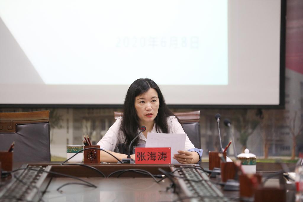 张海涛在会上解读了2020届本科毕业生学士学位授予情况,并就2020届本科毕业生基本情况、毕业率、学位授予率等情况作了通报说明。