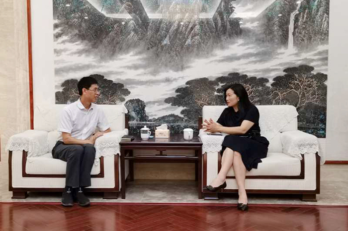张海涛代表学校对余崇发一行的到来表示热烈欢迎。她介绍了学校的发展情况和取得的成果,希望双方在前期良好合作的基础上开展更加深度的交流与合作。
