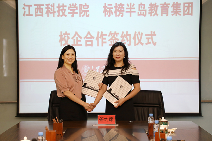 江科网讯(通讯员 刘珊珊)为进一步深化校企合作,实现产教融合,6月17日上午,我校与深圳标榜半岛教育集团举行校企合作签约仪式。校长张海涛与标榜半岛教育集团创始人刘娟签订《校企合作协议书》,教务处、教育学院、校(党)办、开发处等相关部门负责人出席签约仪式。