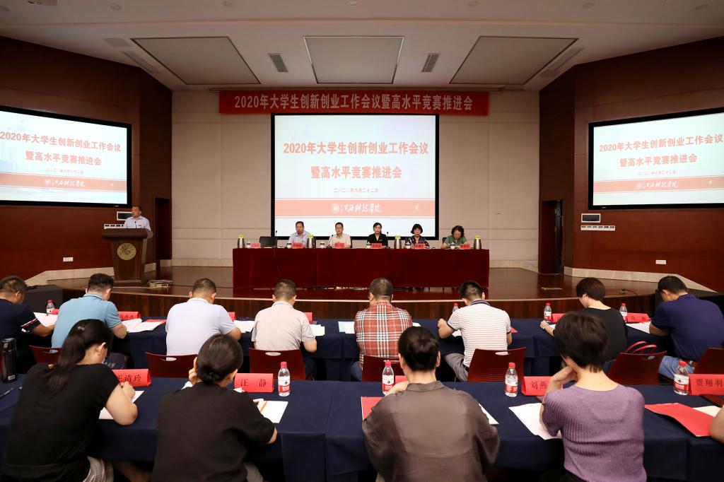 江科网讯(记者 何强江)6月22日下午,我校在行政南一楼第一会议室召开2020年大学生创新创业工作会议暨高水平竞赛推进会。校党委书记邓弘,校长张海涛,副校长万哨凯、林素君、闵桂林,顾问熊爱民出席。会议由邓弘主持。