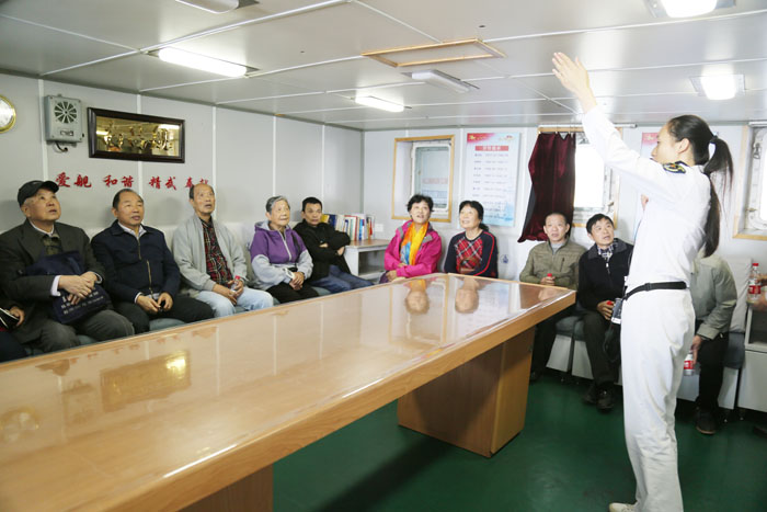 大家在讲解员的指引下参观了“南昌舰”的报房,舰长、政委起居室,会议室,弹药房,兵舱等,聆听了讲解员对“南昌舰”的详细介绍。“南昌舰”是我国第一代导弹驱逐舰,见证了中国海军从小到大、由弱变强的发展历史。“南昌舰”舰身呈现海军灰,132米长、12.8米宽、29.8米高,从入伍到告别万里海疆,曾服役34年、累计航程17万余海里。