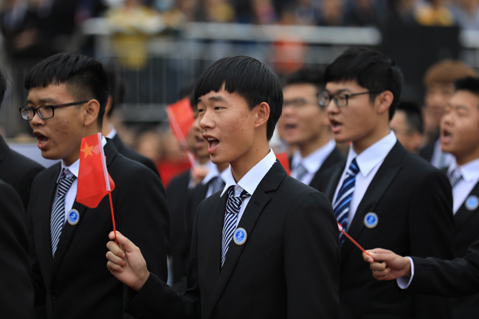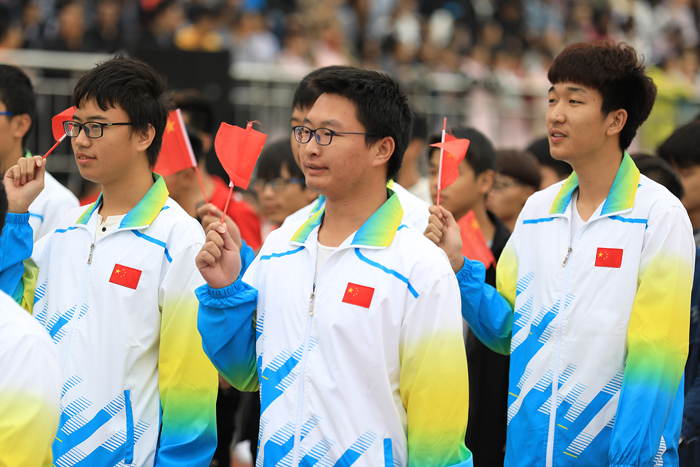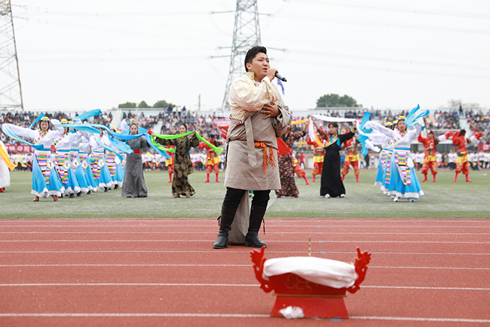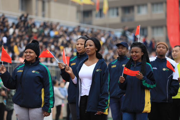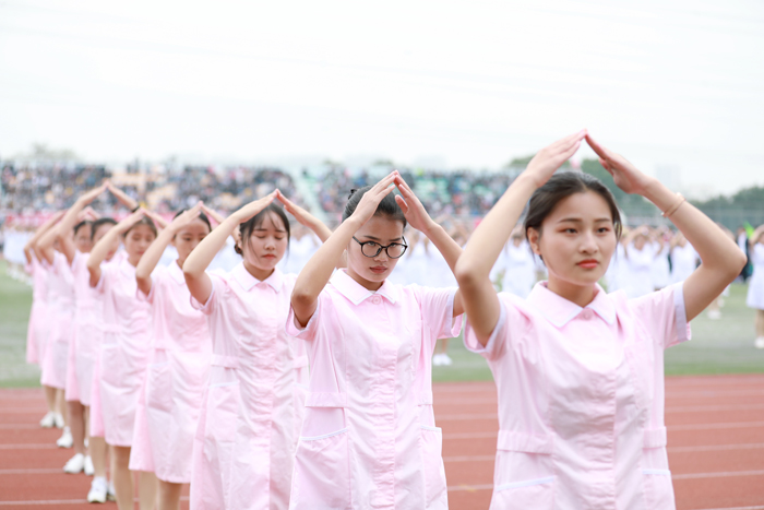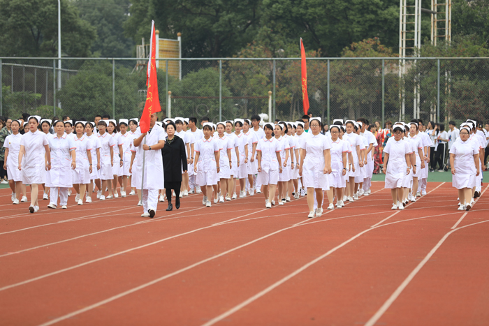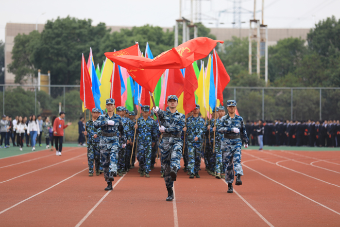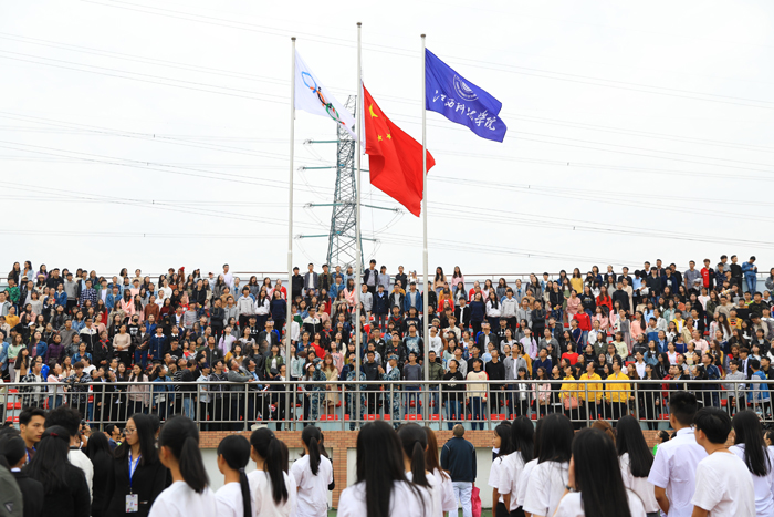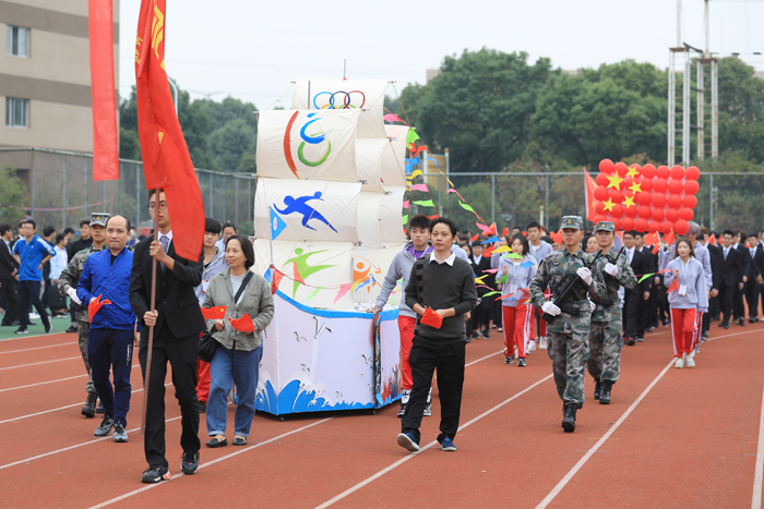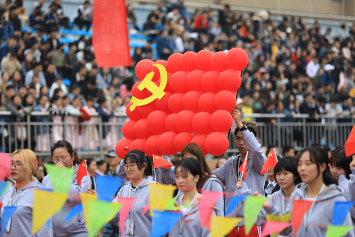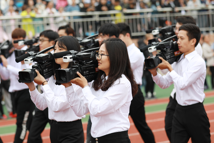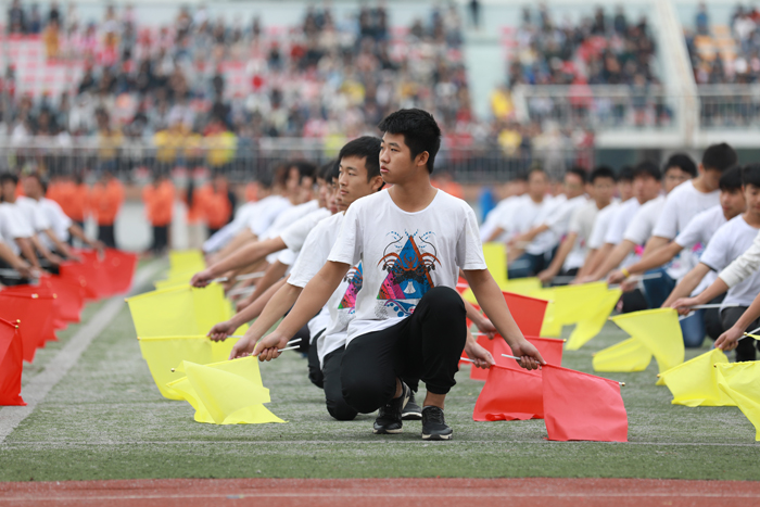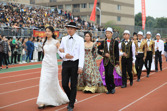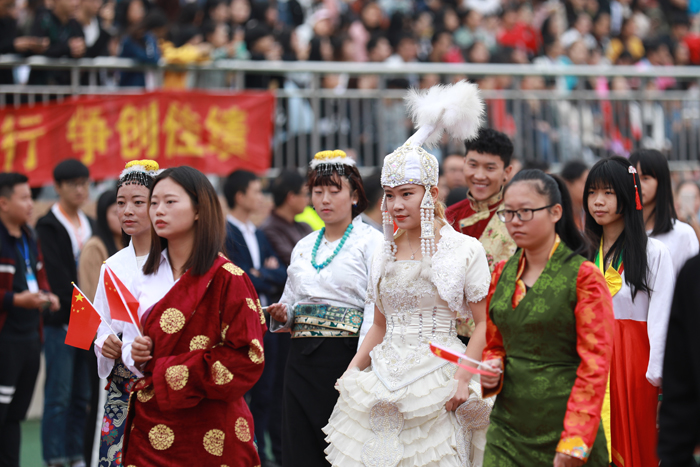 在庄严的升旗仪式后,举行了运动员入场式。裁判员、运动员们踏着稳健的步伐,精神抖擞、士气高昂从主席台前经过。各学院代表队各具特色,运动员有的穿着整齐的制服,有的穿着鲜艳的运动服,有的穿着靓丽的民族服装,让人应接不暇,充分展现出我校师生的活力和风采。