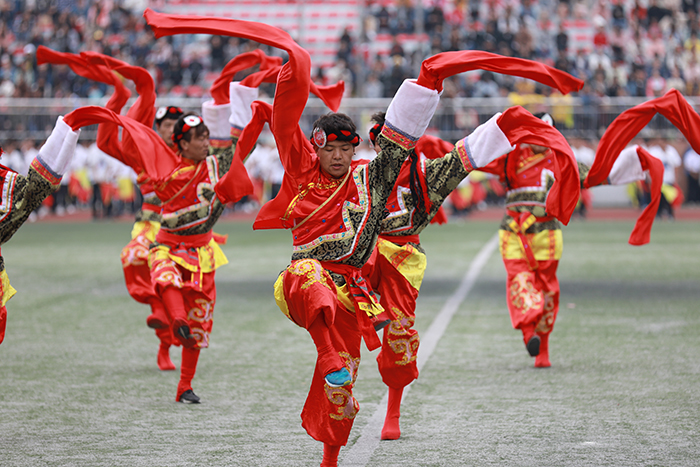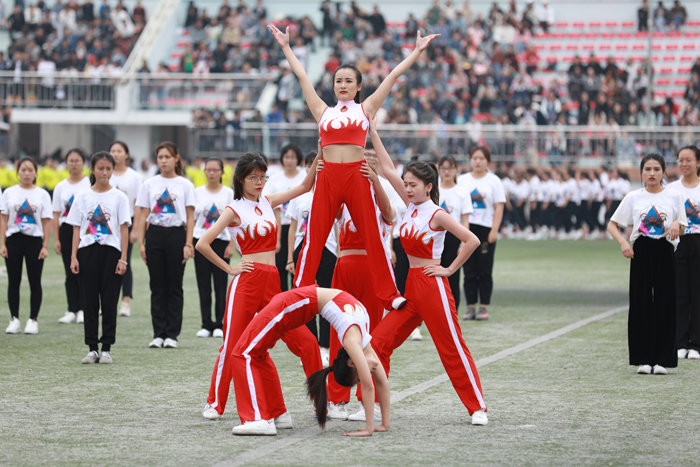 运动员代表伊多和裁判员代表刘胤分别宣誓后,各单位表演了精心编排的节目。管理学院的歌伴舞《雪域欢歌》,信息学院的舞蹈《旗开得胜》,汽车学院的《欢乐汽车梦》,服装学院的《青春啦啦操》,外语外贸学院的舞蹈《中国梦》,财经学院的《good time》,土木学院的舞蹈《全部都是你》,护理学院的手语《国家》,给全场观众带来一场视听盛宴。