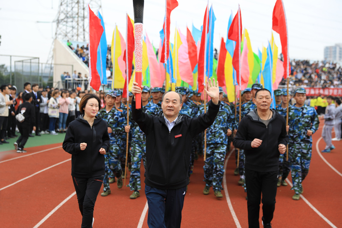 开幕式以火炬传递接力跑拉开序幕。在彩旗护跑队的陪跑和全校同学的夹道欢呼中,万哨凯高擎火炬开始了本届校运火炬接力。校领导和来自各学院的师生代表沿校园主干道依次接力传递。火炬接力的最后一棒由王海担任,他高擎火炬点燃了主席台前喷燃的礼花。