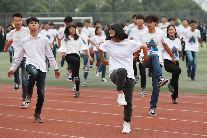 随着裁判长李明宣布第一个竞赛项目——教职工第九套广播体操比赛开始,为期三天的运动会赛程在奥林匹克运动场上火热展开。