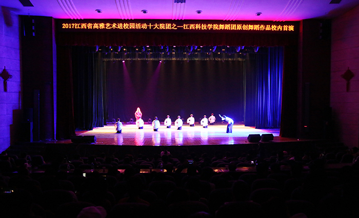 江科网讯(记者 李倩)10月25日晚,2017年江西省高雅艺术进校园十大院团之——江西科技学院舞蹈团原创舞蹈作品校内首演在沙龙舞台隆重上演。董事长于果,校党委书记程样国,校长王海,副校长胡剑锋、周万华、万哨凯、张海涛与来自全校的师生代表一道观看了演出。