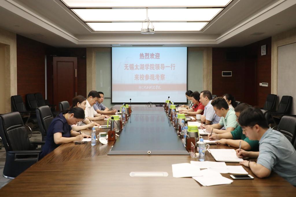 江科网讯(记者 何强江)7月15日上午,无锡太湖学院副理事长、常务副校长孙玉坤,理事会办公室主任凌晨,学工处处长郑斌,教学质量管理办公室主任俞华等一行4人来访我校,受到校长张海涛、副校长万哨凯、顾问熊爱民等校领导的热情接待。宾主双方在行政南一楼第三会议室举行座谈。校(党)办、招就处、学工处、总务处、教务处等部门负责人参加座谈会。