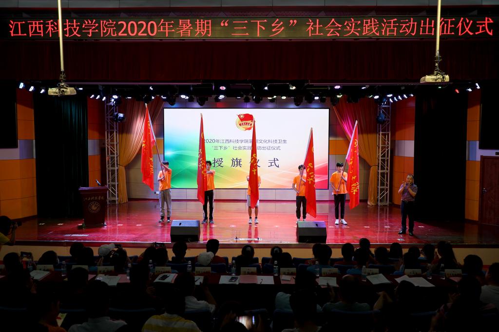 江科网讯(记者 何强江)7月16日下午,我校在全媒体演播中心举行“攻坚克难脱贫路·携手防‘疫’返乡行”2020年江西科技学院暑期文化科技卫生“三下乡”社会实践活动出征仪式。校党委副书记、副校长闵桂林出席。校团委相关负责同志,各学院党总支书记、团委书记、团委副书记、学生会主席,校学生会主席团成员及2020年大学生暑期“三下乡”团队指导教师和学生代表参加出征仪式。