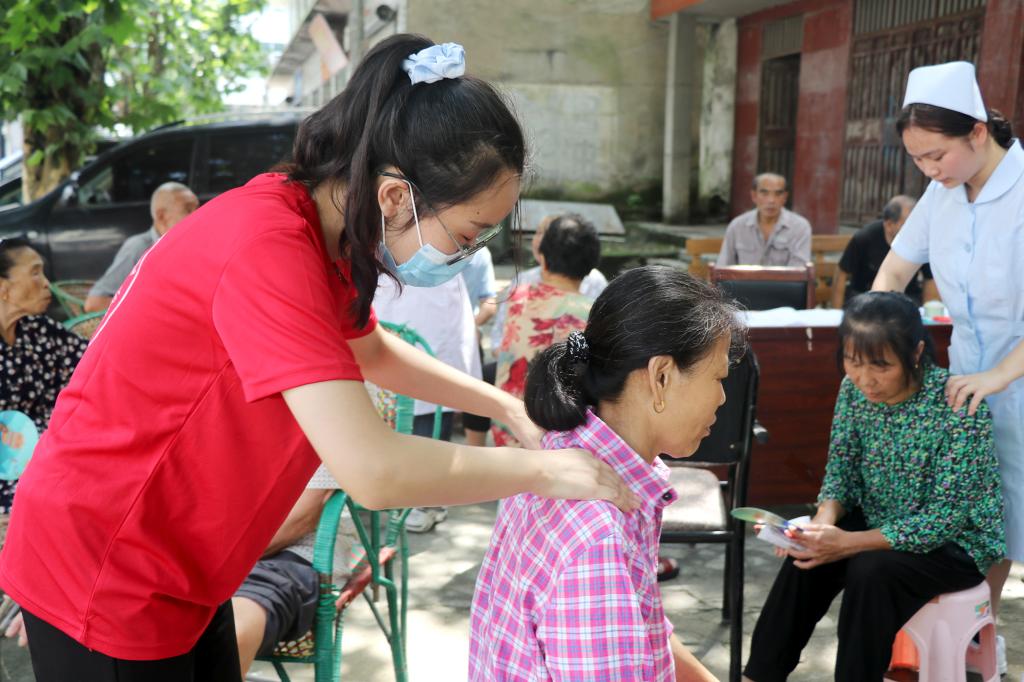 在义诊和与中医保健活动中,结伴而来的老人们有序进行血压、血糖检测,艾灸及推拿按摩等。志愿者针对高血压、糖尿病等老年人易患的常见病、慢性病,向老人们提出预防保健建议,为他们宣讲普及合理饮食、体育锻炼、稳定情绪等方面的健康知识,并特别对独自居家的贫困老人进行了详细叮嘱。
