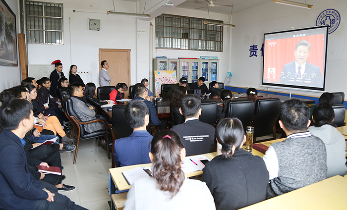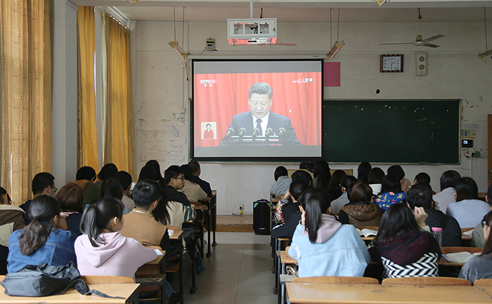 为引导青年学生及时关注这一盛事,思政部组织当天上午有思政课的班级在课堂上集中收看了党的十九大开幕会直播。思政部主任闵桂林表示,组织大学生观看党的十九大开幕会,学习党的十九大精神,回顾五年工作,让学生了解国家历史与现实发展轨迹,让学生站得更高,看得更远。作为思政课教师,要学习贯彻党的十九大精神,对党的十九大提出的新观点、新论断、新战略进行深入研讨,组织教师深入班级宣传,掀起学习党的十九大精神的高潮,让党的十九大精神入耳、入脑、入心。