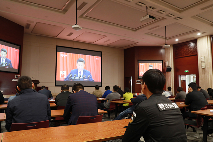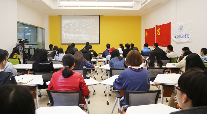 江科网讯(记者 李倩 李玉云 薛敬涛 何强江)10月18日上午,中国共产党第十九次全国代表大会在北京隆重开幕。董事长于果,党委书记、督导专员程样国,校长王海和全体校领导,校党委委员,机关干部,各民主党派代表,各学院师生代表分别在会议室、教室等多个场所集中收看党的十九大开幕盛况,聆听习近平同志代表十八届中央委员会向大会作报告。我校师生为党的十九大的胜利召开欢欣鼓舞,并在收看结束后纷纷畅谈感想与体会。