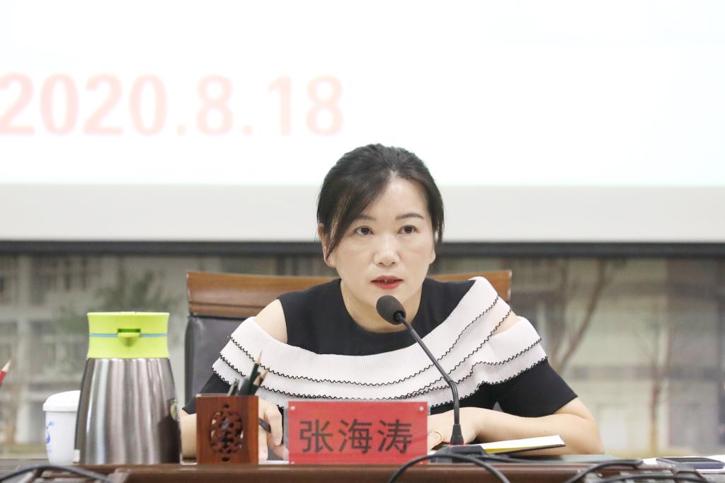 张海涛还就2020年秋季开学新冠肺炎疫情防控工作、新学期教学相关工作及学科建设、科学研究、师资队伍建设、校园安全稳定、招生就业、“互联网+”大学生创新创业大赛等重点工作作了安排部署。她希望大家在新学期落实好新要求,齐心协力,集思广益,乘风破浪,共同、持续推动学校发展。