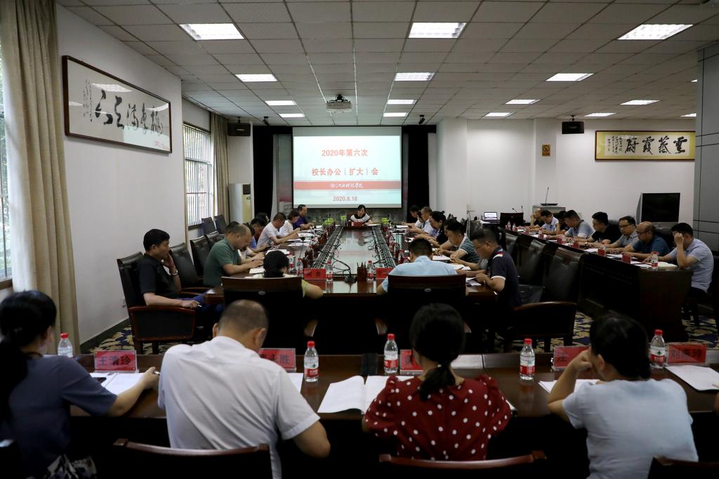 江科网讯(记者 何强江)8月18日下午,校长张海涛在行政北一楼会议室主持召开2020年第六次校长办公(扩大)会,传达全省高校党委书记、校长研讨班会议精神,全面部署新学期学校各项工作。副校长陈石俊、万哨凯、林素君、黄辉玲、闵桂林,顾问熊爱民出席会议。