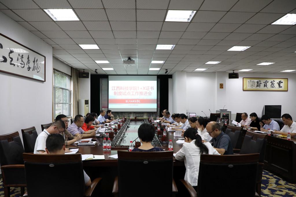 江科网讯(记者 陈佩璇)9月16日下午,我校在行政北一楼会议室召开1+X证书制度试点工作推进会。校长张海涛,副校长万哨凯、林素君、闵桂林、马勇、李玮出席。会议由万哨凯主持。