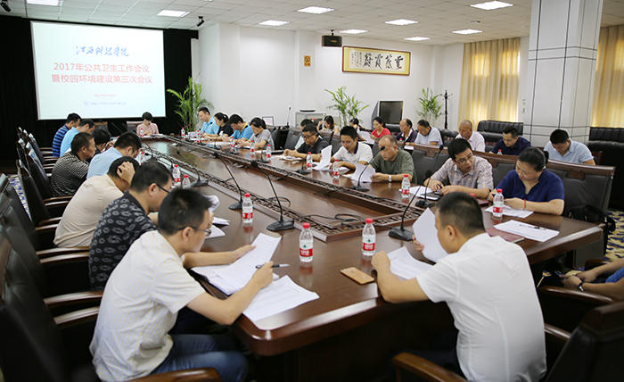 总务处长郑苏生传达了省教育厅《关于2017年学校突发公共卫生事件防控工作第三次预警通知》文件精神,总结2017年上半年学校公共卫生及环境建设工作等相关内容。副处长崔洪洁通报了2017年9月校园环境建设情况等相关内容。医务所长庄义泉传达了2017年高新区高校疾控工作会议精神,通报了上半年高校主要传染病疫情,讲解了我校公共卫生工作台账的填写要求。相关职能部门负责人通报了各部门开展相关工作的情况。