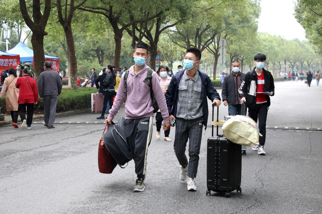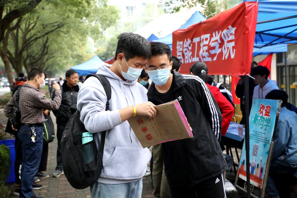 由于当前疫情防控常态化下迎新工作的特殊性,入学报到的新生凭录取通知书、健康绿码、身份证,在检测体温后进入学校。工作人员和志愿者帮助同学们搬运行李、引导大家前往学院报到注册,热情周到的服务让初入大学校园的新生们倍感温暖。