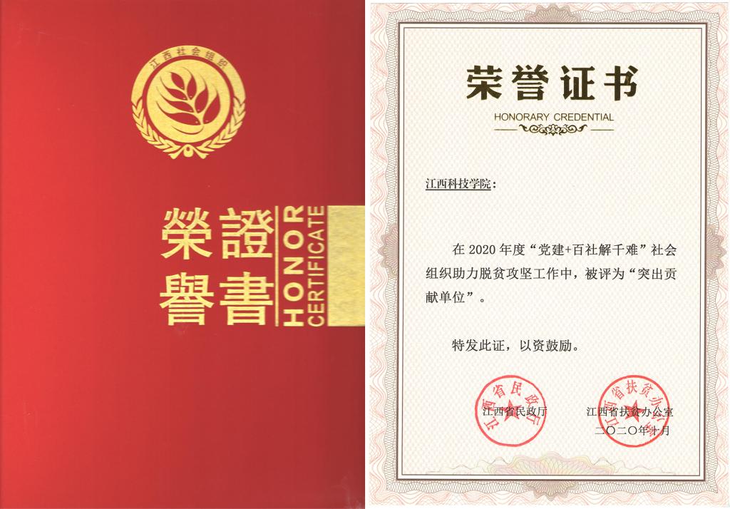 江科网讯(记者 何强江 通讯员 刘国安)近日,省民政厅、省扶贫办联合召开“党建+百社解千难”社会组织助力脱贫攻坚座谈交流会,对“党建+百社解千难”助力脱贫攻坚做出积极贡献的社会组织给予通报表扬。我校在2020年度“党建+百社解千难”社会组织助力脱贫攻坚工作中,荣获“突出贡献单位”。