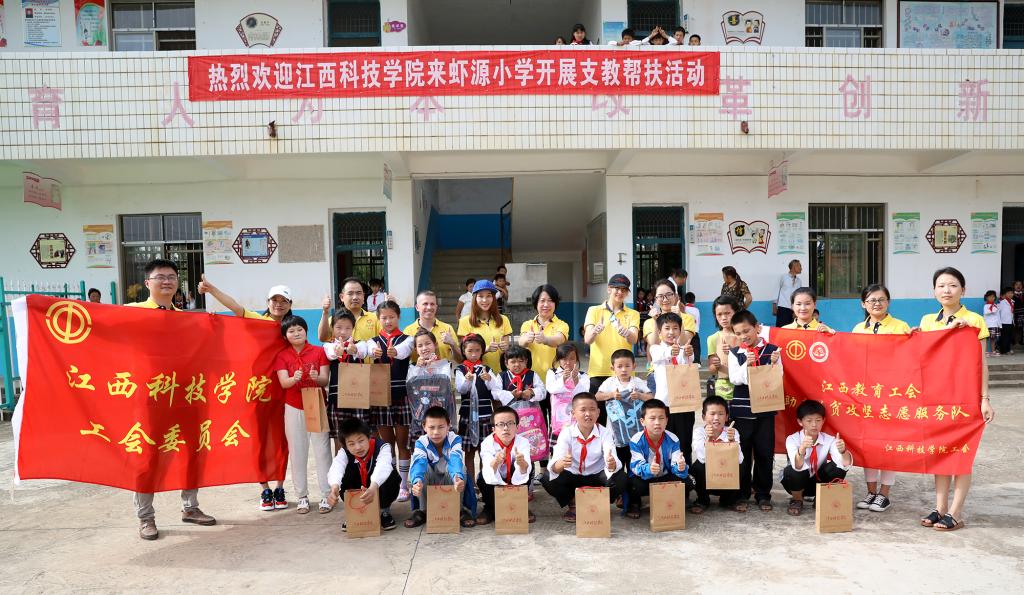 我校还以爱心真心善心投身光彩事业和“千企帮千村”活动,通过精准对接,分别帮扶弋阳县清湖村和坑口村、寻乌县扶贫办、黎川县德胜团村等困难集体,近三年共捐助资金129万元。教师志愿者每年定点赴余干县白马桥乡古塘村虾源小学开展“支教帮扶助力脱贫攻坚”活动,与100余名留守儿童建立结对帮扶。寻乌县和余干县均于2019年4月经省政府批准退出贫困县系列。