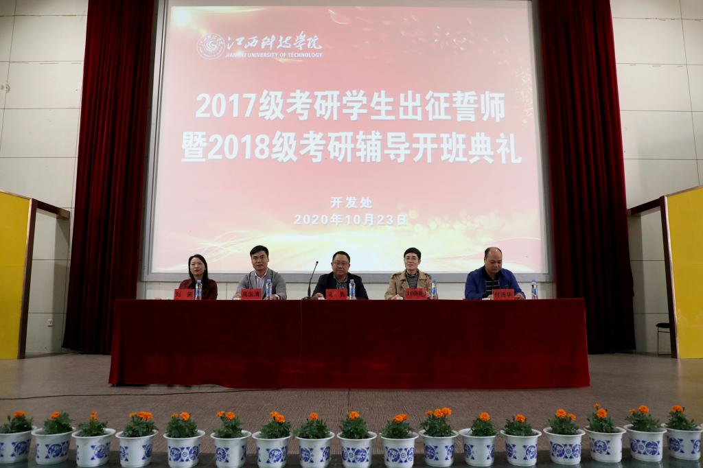 江科网讯(记者 何强江 实习记者 沈海玲 陈玟婷)10月23日下午,我校在报告A厅举行2017级考研学生出征誓师暨2018级考研辅导开班典礼。副校长马勇,全国考研名师刘晓艳、周国清出席。开发处负责人、考研辅导班教师与700余名考研学生与会。