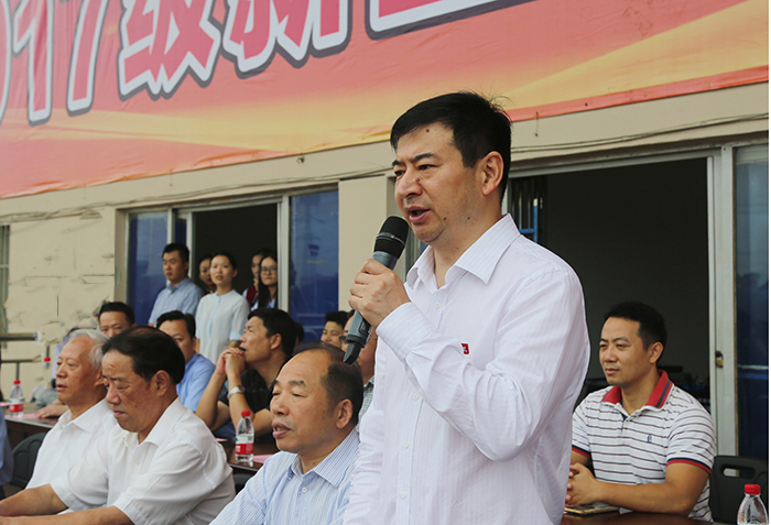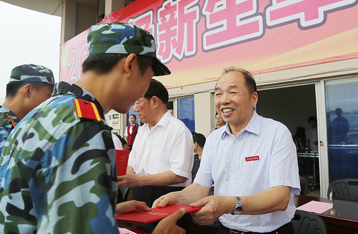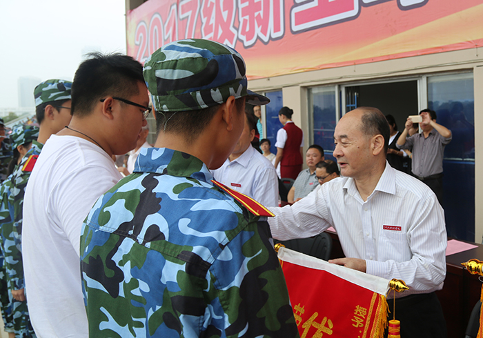 王海在仪式上发表讲话。他代表学校向军训教官表示亲切慰问,向来自全国各地的新同学表示热烈欢迎。他指出,同学们用整齐的步伐、嘹亮的口号为自己大学的第一课交上了满意的答卷,让学校感受到了新一代江科人的活力。他还送给全体新生三句话:要铭记一句校训——自强不息,求真务实;要结交两个朋友:图书馆和运动场;要提高“三个能力”,即综合能力、专业能力和创新创业能力。他祝愿同学们在校期间学业有成、健康成长,毕业后成为国家栋梁。
