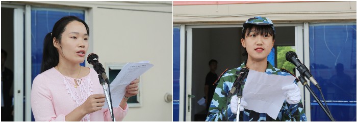 教师代表罗文琦和新生代表赵梓菡发了言。