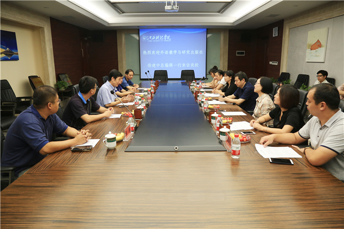 江科网讯(记者 薛敬涛)9月14日下午,外语教学与研究出版社总编辑、北京外研在线科技有限公司执行董事徐建中一行来校,受到于果董事长、张海涛副校长的接待。宾主在行政楼南一楼第三会议室举行座谈。