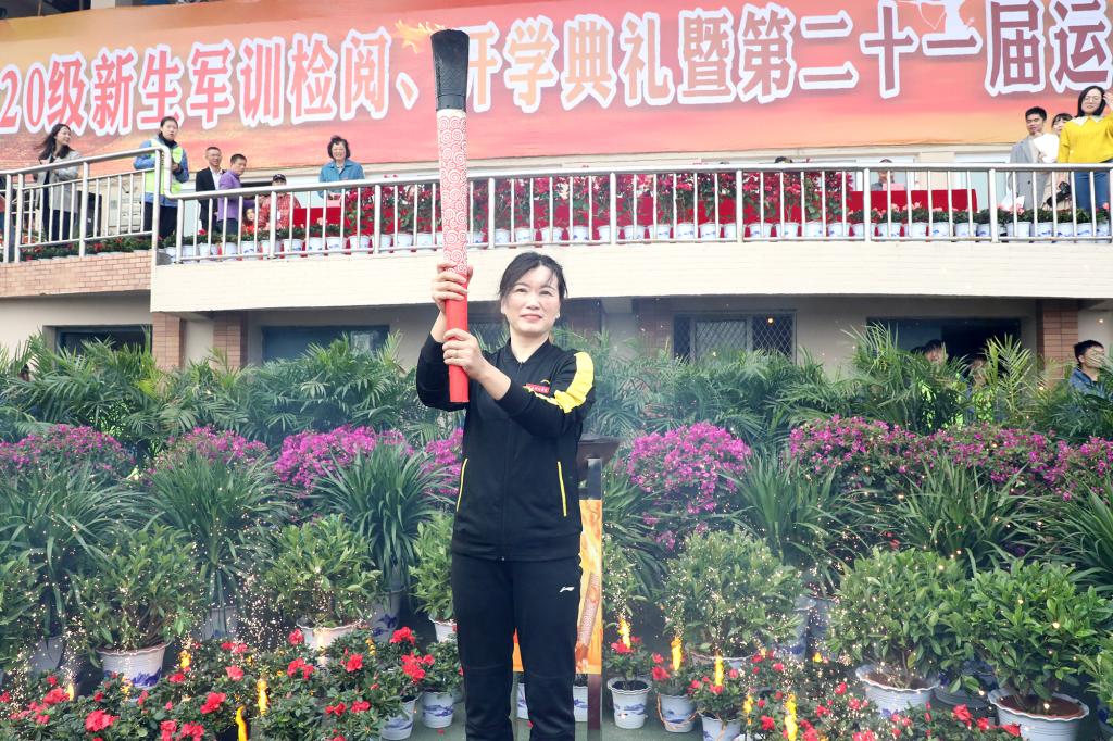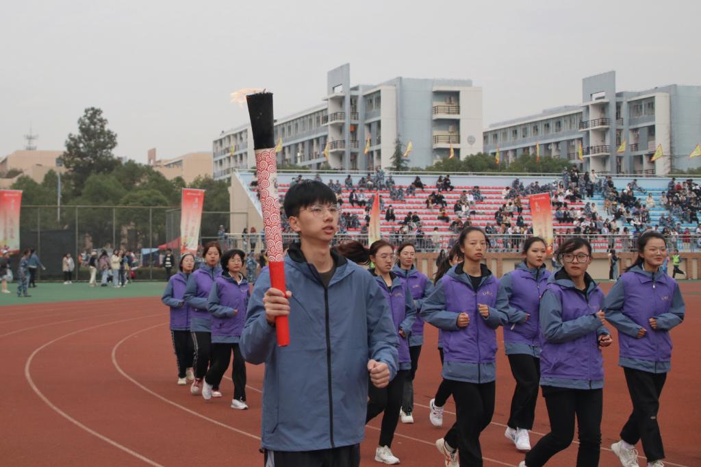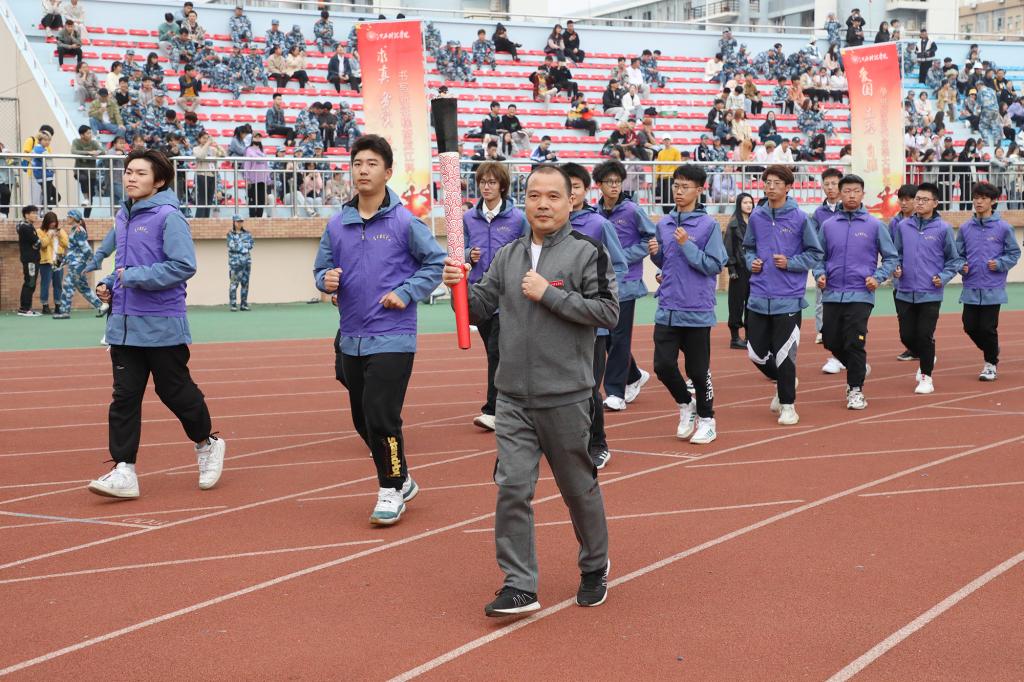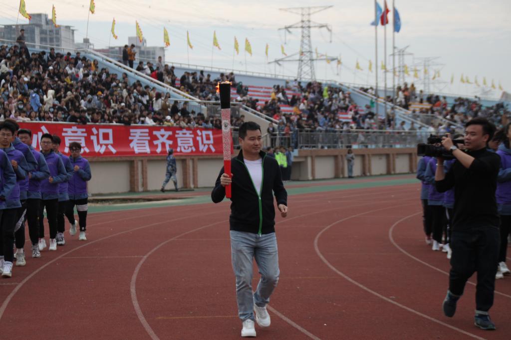 随后,学校第二十届运动会盛大开幕。开幕式以火炬传递接力跑拉开序幕。闵桂林在护跑队的陪跑和同学们的夹道欢呼中,高擎火炬开始本届校运火炬传递接力。火炬依次在校领导、优秀教师代表、优秀学生代表、优秀校友代表沿奥林匹克中心跑道依次接力传递,张海涛接力传递火炬最后一棒,缓缓点燃主席台前的校运会圣火。
