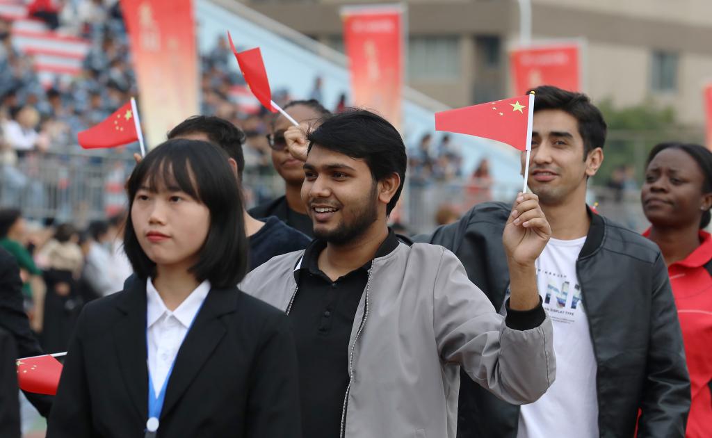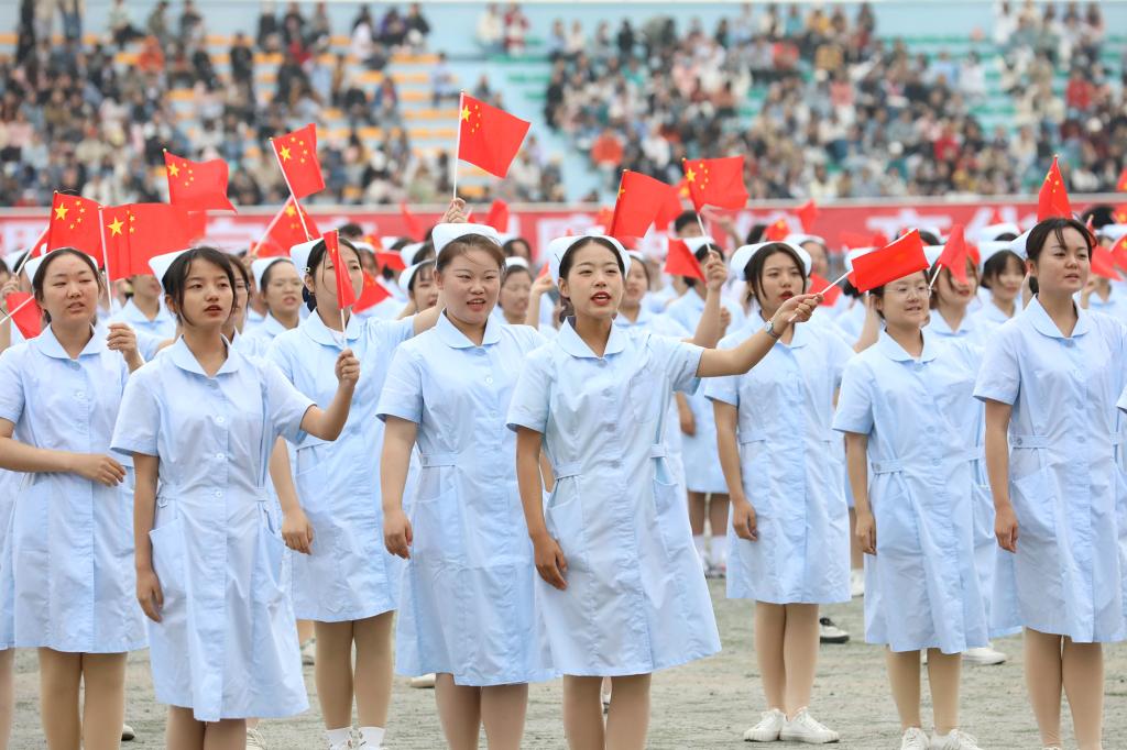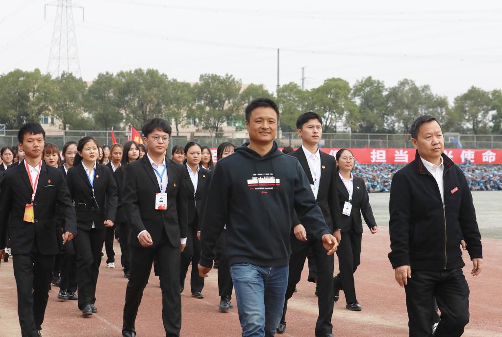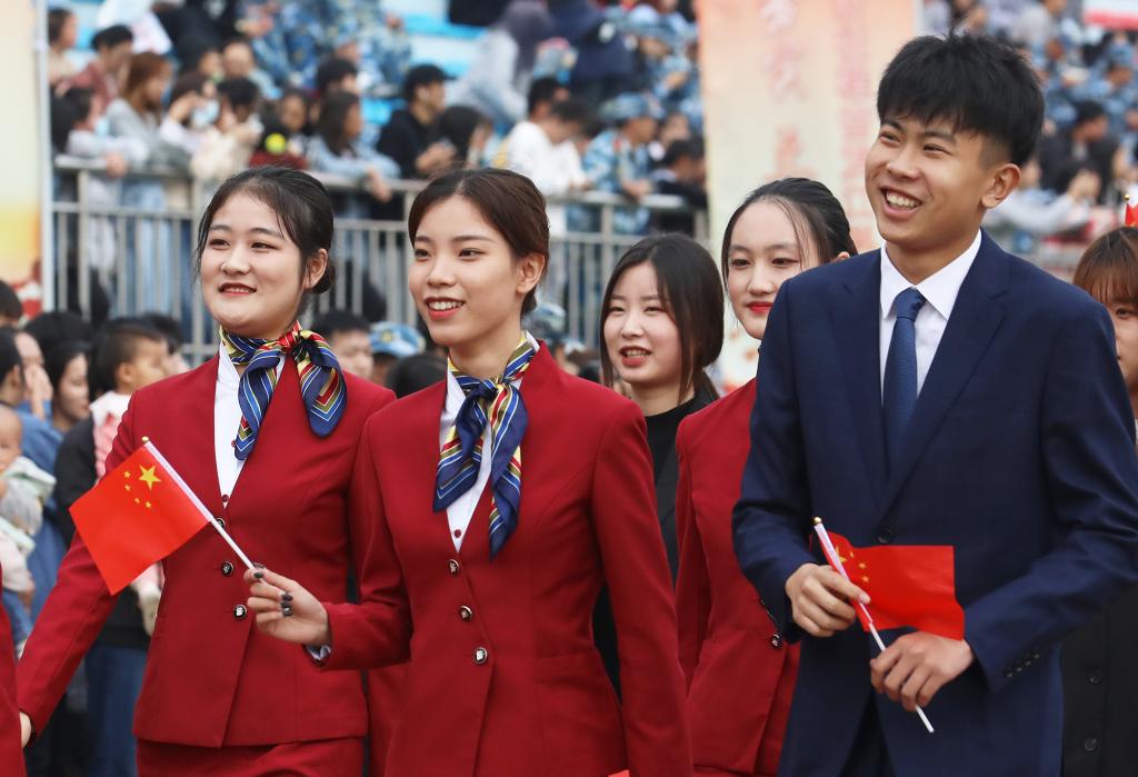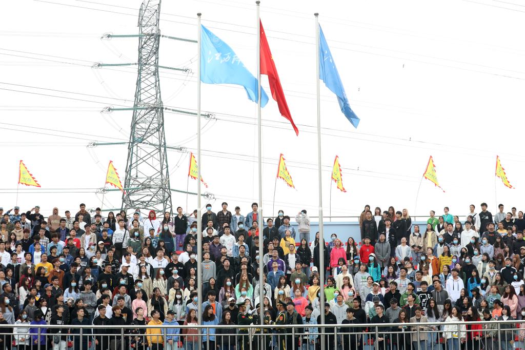 于果宣布学校第二十一届校运会正式开始。在激昂的运动员进行曲中,裁判员队伍和智能工程学院、信息工程学院、城市建设学院、管理学院、财经学院、外国语学院、艺术设计学院、音乐舞蹈学院、医学院、文化与传媒学院、教育学院等学院师生代表队带着满腔的热情,昂首阔步从主席台前经过。