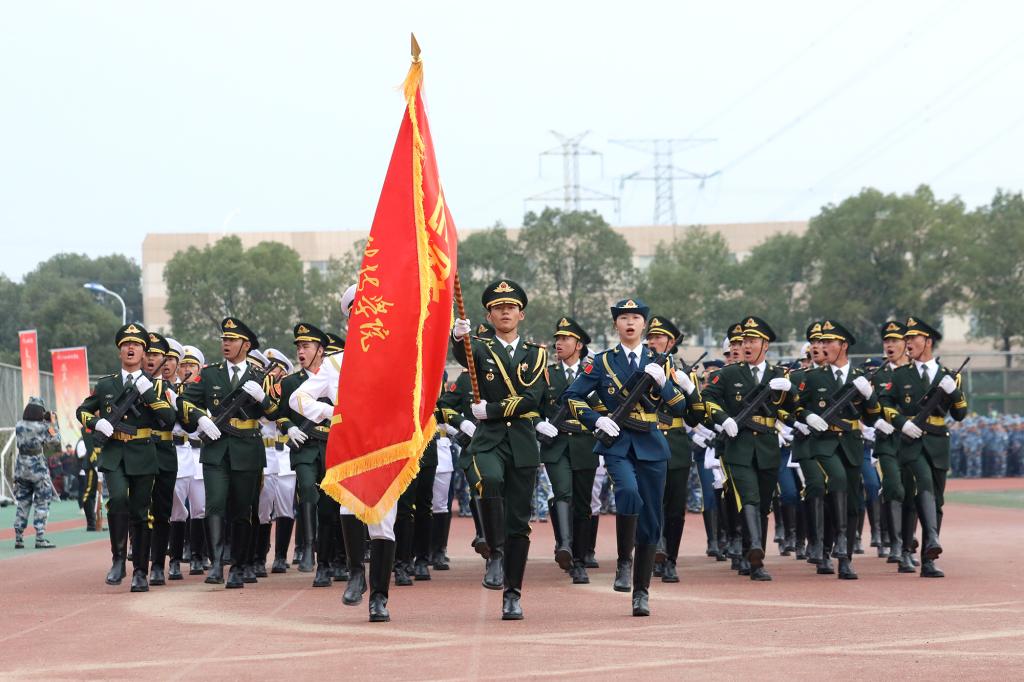 上午8时整,开学典礼正式开始。在庄严的国歌声中,五星红旗冉冉升起,全场师生起立行注目礼。在于果宣布“检阅开始”后,由2020级新生组成的方阵队精神抖擞,踏着铿锵的步伐,喊着嘹亮的口号,以飒爽英姿依次通过主席台接受检阅,展现新时代江科学子的蓬勃朝气与昂扬斗志。