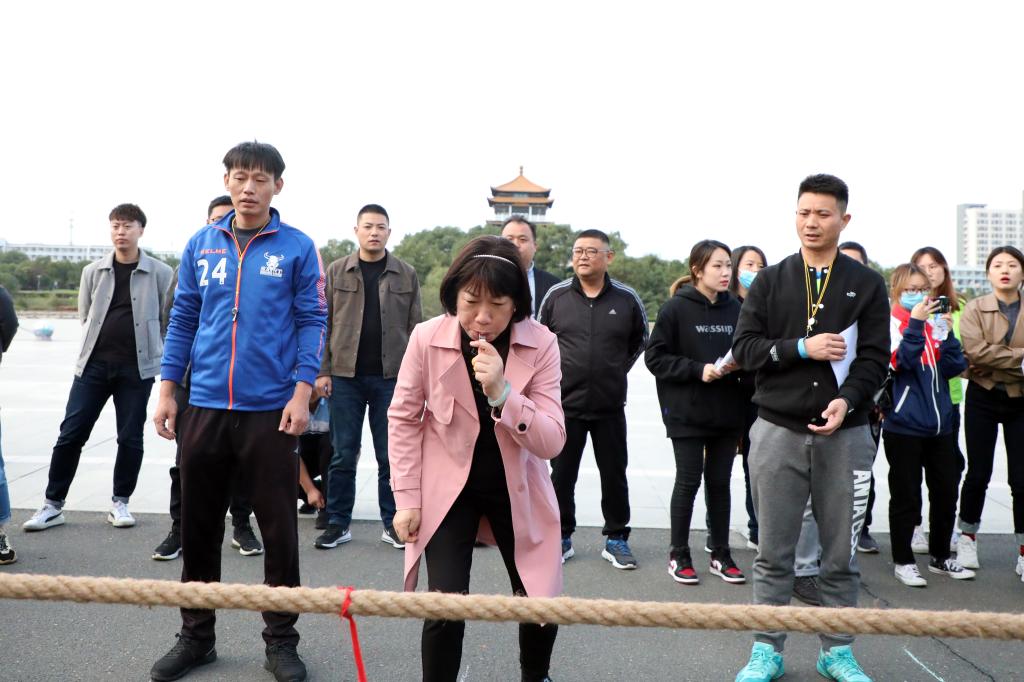 江科网讯(记者 陈佩璇)为推进全民健身运动的开展,加强学校职工之间的交流,增强教职工身体素质,营造健康向上的工作氛围,11月4日-7日,我校举行第二十一届运动会教职工拔河比赛。副校长、工会主席林素君,党委副书记、副校长闵桂林到现场观看比赛,并为选手加油助威。林素君为第一场比赛鸣哨。