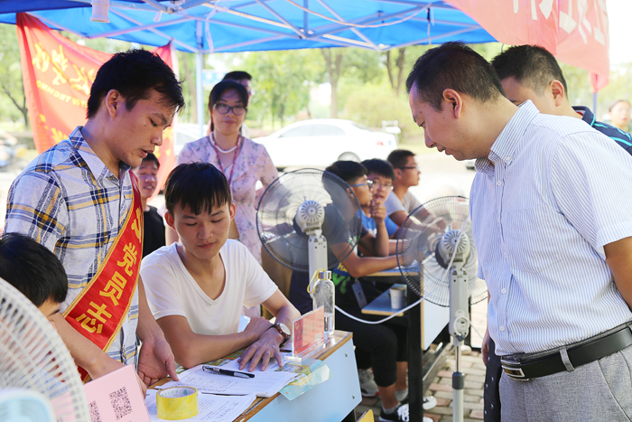 9月10日上午,万哨凯来到迎新接待点,了解2017级专科新生报到和迎新接待工作相关情况。在视察过程中,他嘱咐大家要认真做好迎新工作,积极为刚入学报到的新生解决相关问题,展现我校真诚与热情的工作服务态度。