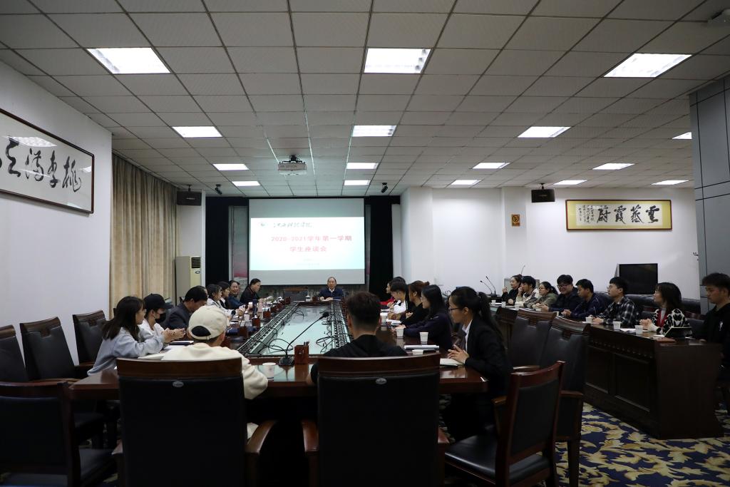 江科网讯(记者 陈佩璇 实习记者 沈海玲)11月10日下午,督导处在行政北一楼会议室召开2020-2021学年第一学期学生座谈会。总督学程样国出席。教务处、学工处、督导处部门负责人,教学督导员代表,督导处全体人员及各学院学生代表参会。会议由督导处副处长刘江英主持。
