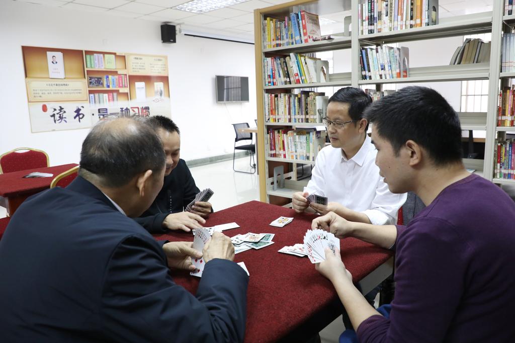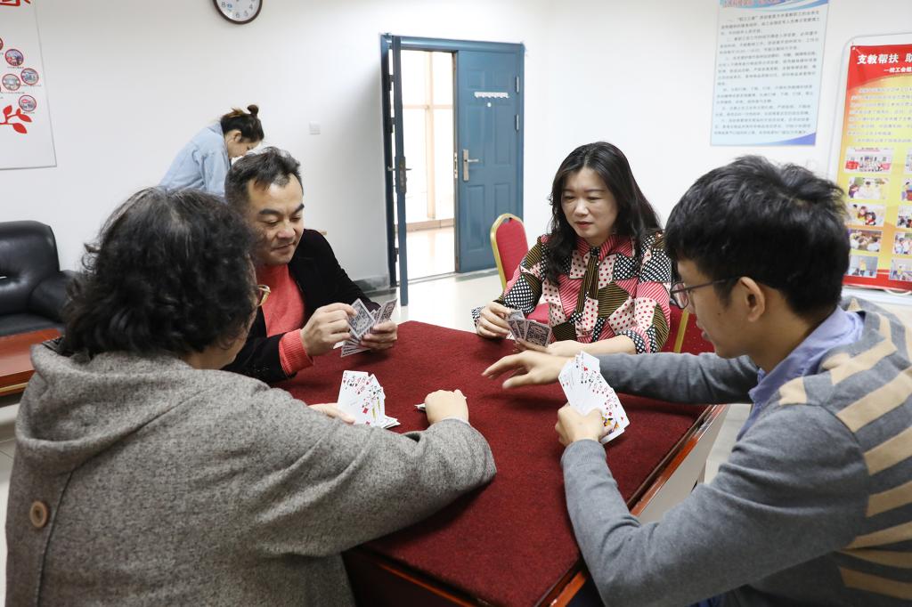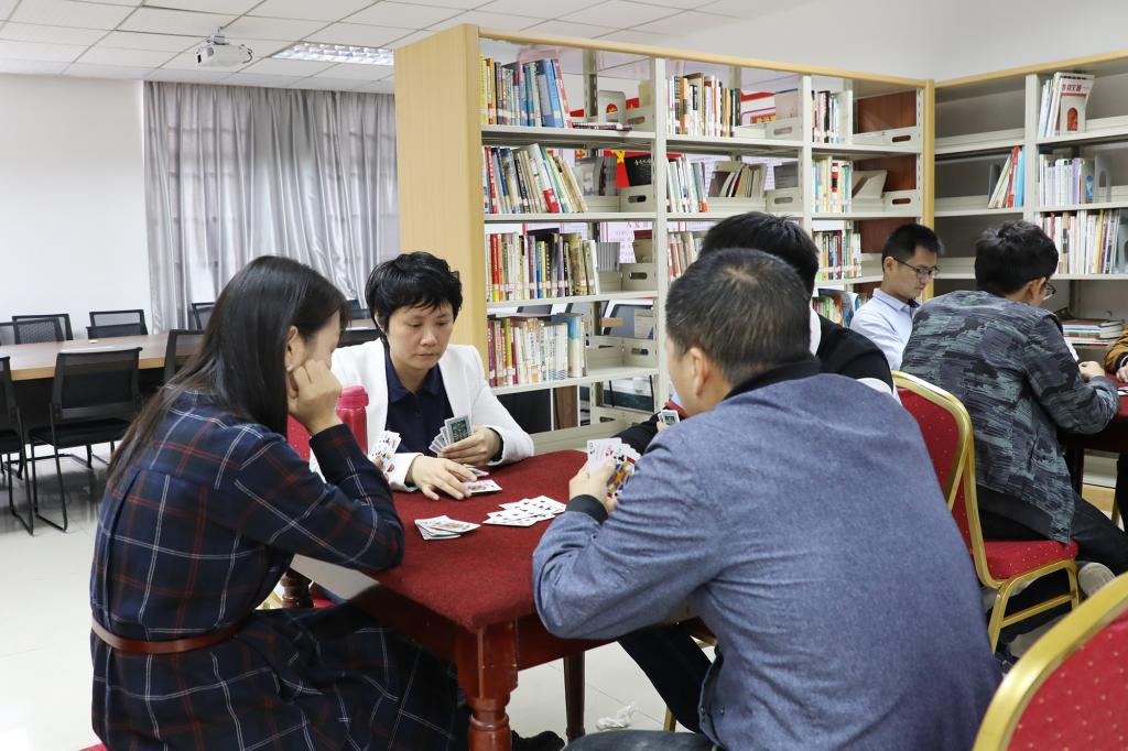 江科网讯(记者 何强江)近日,我校工会在学校职工之家举办了“欢度金秋,教职工棋牌比赛”,以此加强教职工交流,活跃教职工业余文化生活。比赛涵盖象棋、围棋、跳棋、升级扑克、五子棋等项目,来自全校20个分工会的近90名教师参与,校领导带头参加比赛。比赛期间,副校长、校工会主席林素君全程为选手们加油助威,工会办公室副主任刘国安和部分分工会主席负责比赛的组织、人员安排并担任评委。
