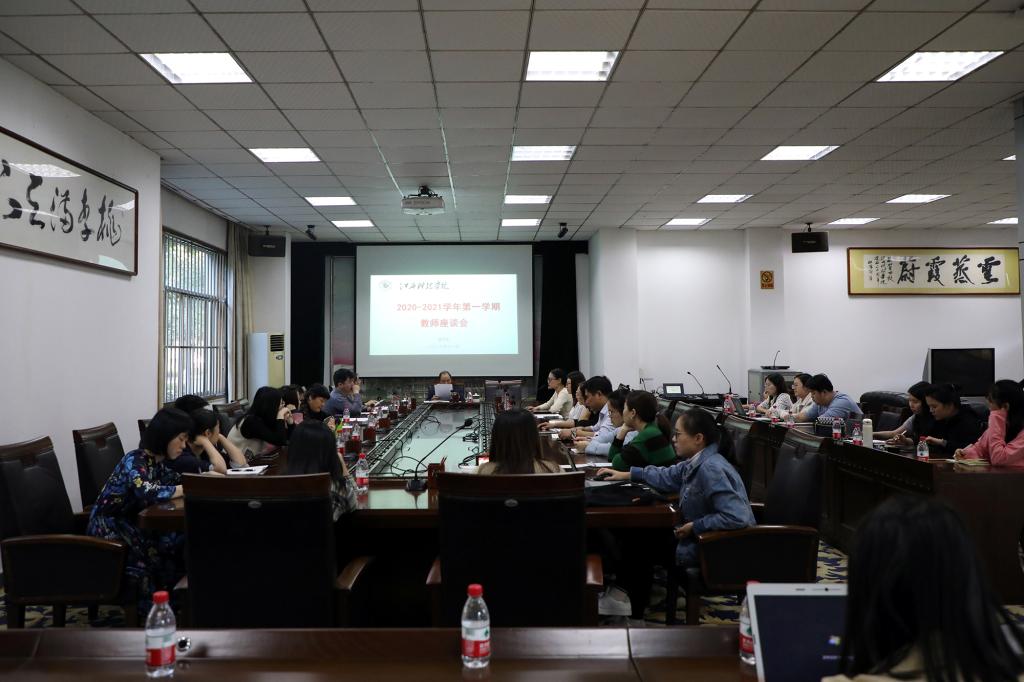 江科网讯(记者 陈佩璇 实习记者 沈海玲)11月18日下午,督导处在行政北一楼会议室召开2020-2021学年第一学期教师座谈会。总督学程样国出席。教务处、督导处部门负责人,教学督导员代表,督导处全体人员及各学院教师代表参会。会议由督导处处长周青主持。