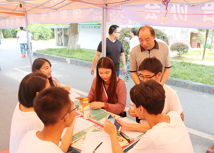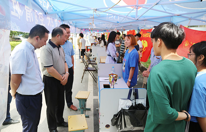 之后,程样国和万哨凯来到我校社团纳新点,视察了社团纳新工作,慰问了顶着烈日坚守工作岗位的学生干部们。在巡视过程中,程样国指出,要坚持打造好我校的学生社团,丰富同学们的课余生活,营造良好的校园文化氛围。