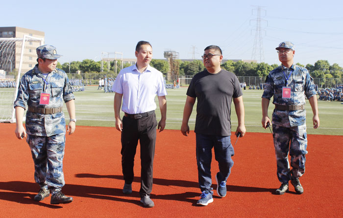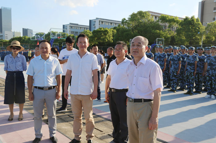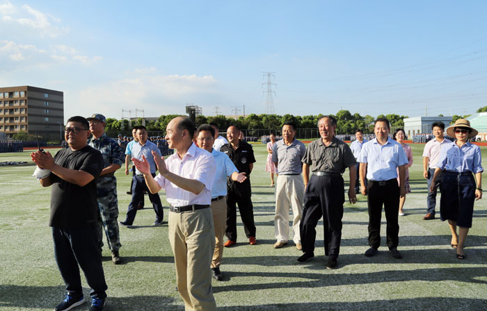 当天下午,校长王海,校党委副书记肖イ毛根,副校长胡剑锋、黄辉玲、周万华、万哨凯在相关部门负责人的陪同下,深入军训场地看望慰问了参训新生和承训教官,了解新生第一天军训情况。