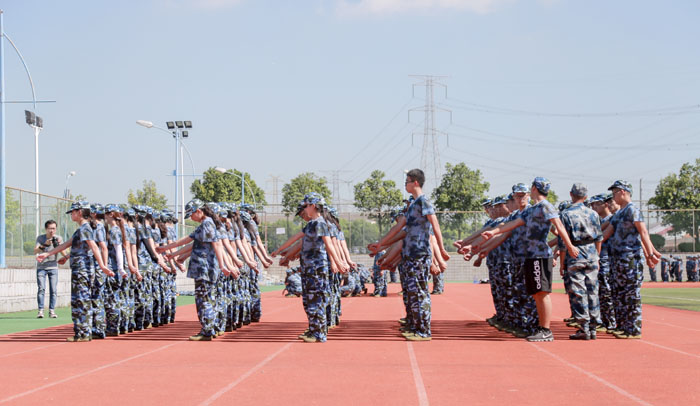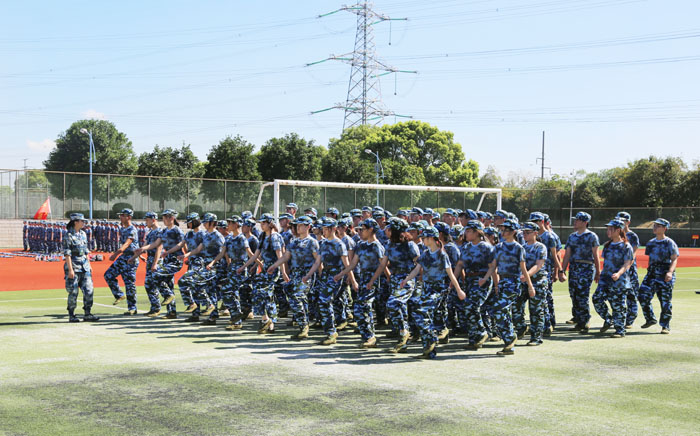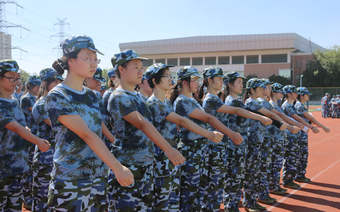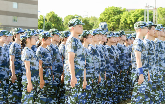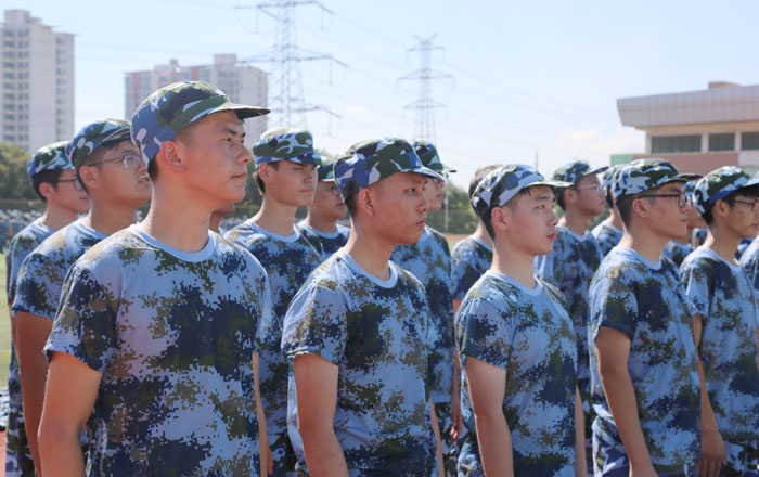 经过教官们简单整队后,首先开始的是军姿训练。参训的新生们整齐地列队,腰背挺直,双脚靠拢,目光炯炯有神地看向前方。教官在队列中穿行,严肃认真地检查参训学生的站姿,耐心地纠正每一个细小的问题。