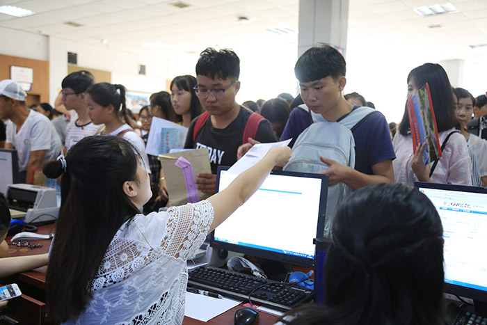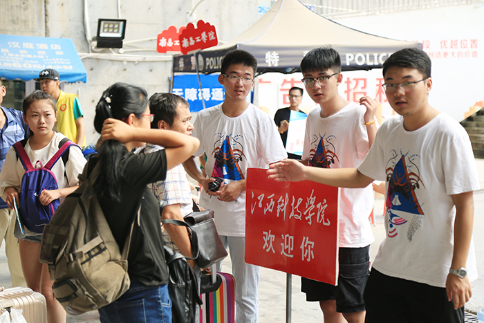 江科网讯(本网综合)8月25日-27日,我校迎来了2017级本科新生。为了做好本次迎新工作,我校成立了专门的迎新工作领导小组。迎新期间,相关部门工作人员、各学院教师及迎新志愿者们在各自的工作岗位上为新生及家长提供了周到细致的服务。为确保新生能够安全抵校,学生志愿者们分别在昌北国际机场、南昌火车站、南昌西站、南昌长途汽车站等地设立24小时接待站,引导新生有序乘坐校车。校内志愿者则在各新生报到手续办理点耐心解答学生及家长的疑问,帮助他们顺利完成报到手续、入住宿舍。王海校长和万哨凯副校长分别在相关职能部门负责人的陪同下,深入迎新工作一线巡视,并亲切慰问辛勤工作的老师和同学。