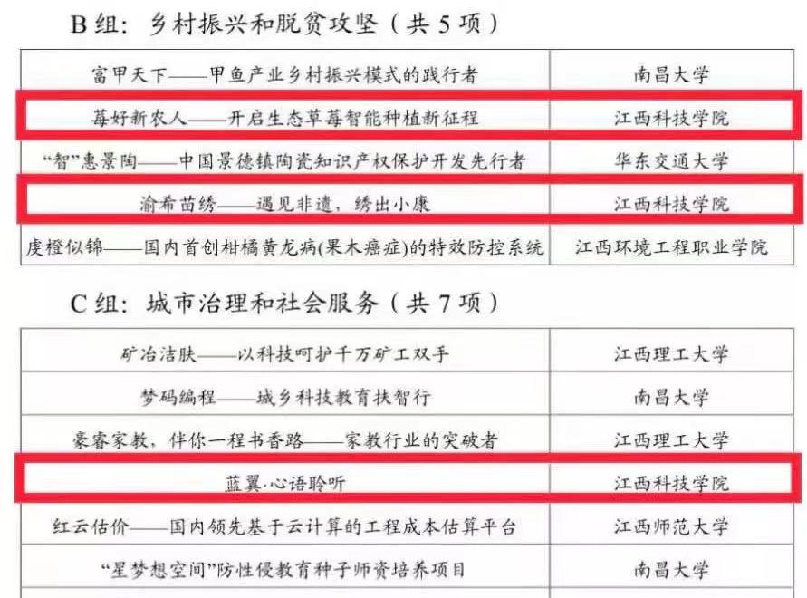 自去年12月份启动备赛工作,学校高度重视赛事筹备,组织召开专题会,部署推进项目选拔;调研走访学院,分析研究项目情况;同时,校团委“挂牌督战”,提供全方位支持,组织项目征集、校内竞演、实况实训;提供项目指导、专家评审、材料完善。累计共有631个项目报名选拔,经过各级选拔、省赛角逐,最终,《渝希苗绣:遇见非遗,绣出小康》作为省赛金奖项目直接晋级国赛;《莓好新农人——开启生态草莓智能种植新征程》《蓝翼·心语聆听》作为国赛直通车项目入围国赛。