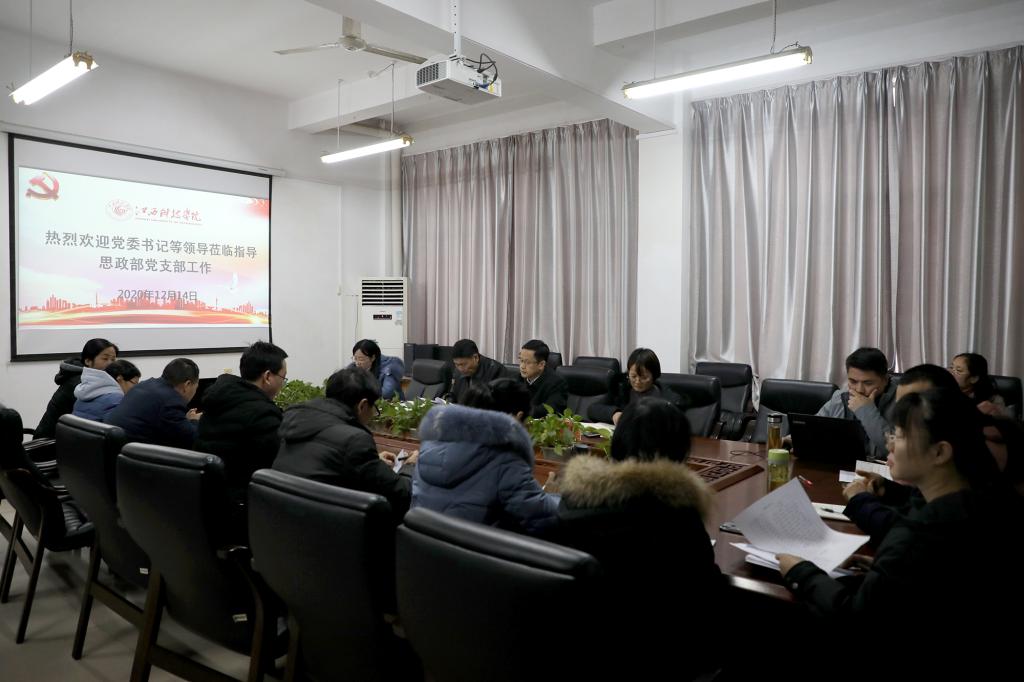 江科网讯(记者 何强江)12月14日下午,校党委书记邓弘在J1-403会议室参加并指导思政部党支部活动。纪委书记、组织部部长夏拥华,宣传部部长郭月芳、统战部部长刘瑛等随同参加活动。活动由思政部党支部书记何龙安主持。