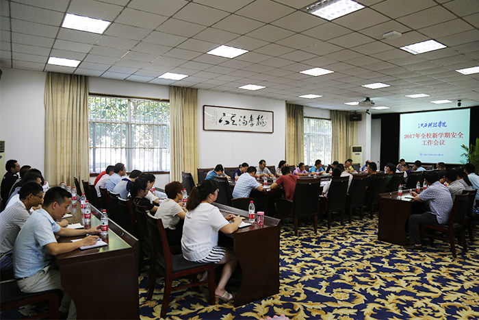 江科网讯(记者 薛敬涛)为认真贯彻落实全省教育系统安全稳定工作会议精神,深化校园平安建设,确保新学期校园和谐稳定,8月22日下午,周万华副校长在行政楼北一楼会议室主持召开了全校新学期安全工作会议。